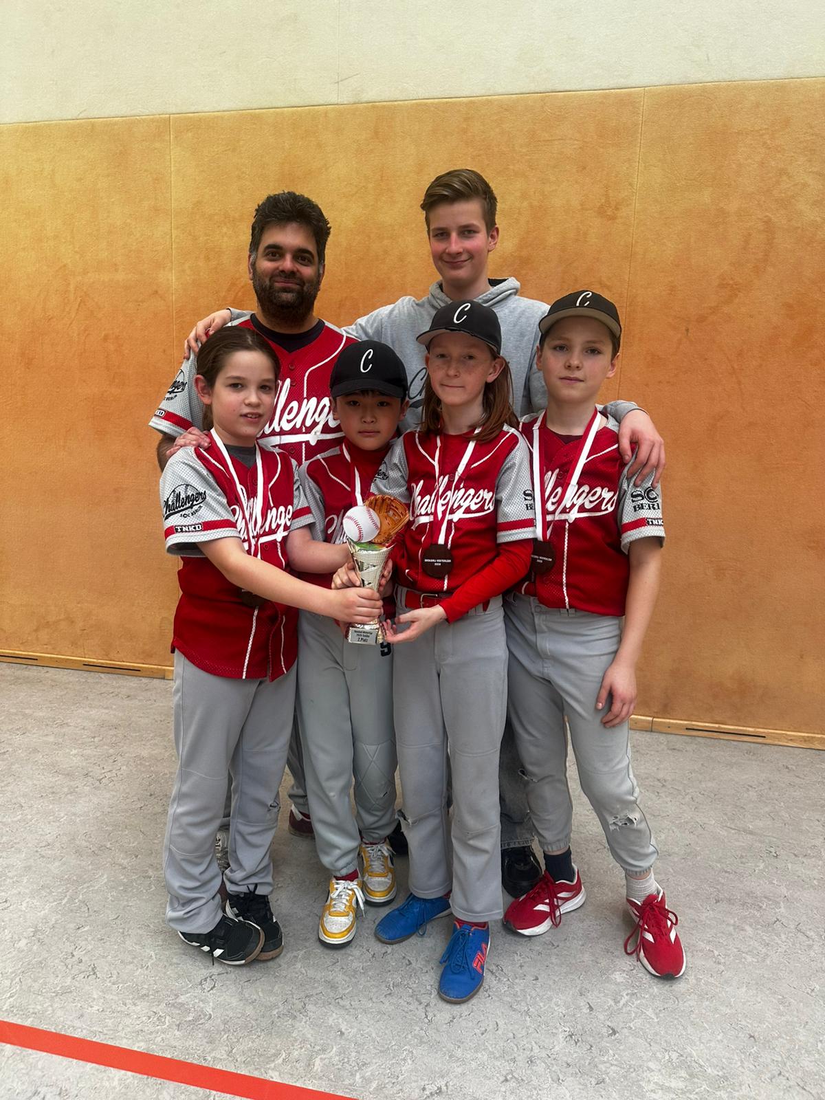 Nach einem starken 3. Turniertag (5 Siege, 1 Niederlage) haben unsere Challengers-Kids – verstärkt durch unsere Kollegen von den Sliders – den 2. Platz in der Winterliga geholt! 🥈⚾