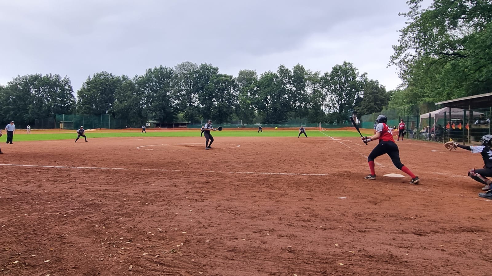 Die Challengers starteten mit Pitcherin Risa Ueno-König auf Catcherin Lotta Bahls in den entscheidenden Spieltag, und bis zum Ende lieferten sich die beiden Teams ein spannendes Spiel. Die Ravens zeigten direkt zu Beginn Angriffslust in Form von gekonntem Schlagen und Base Stealing, v.a. durch R. Smith, die direkt zwei Bases klaute, so dass die Challengers im 1. Inning beim At Bat von M. Rodriquez einen Run kassierten. In der Offense gelang es ihnen nicht, selbst zu scoren, doch im 2. Inning lief es in der Defensive besser – allerdings für beide Teams, denn beide blieben „scoreless“. Im 3. Inning gelang den Challengers dann der Ausgleichspunkt. Besonders erwähnenswert ist hier auch der erste Hit in der Bundesliga für Juniorin Celina Hennig, die einen schönen Grounder durchs Middle Infield schlug und letztendlich einen Punkt erlaufen konnte.