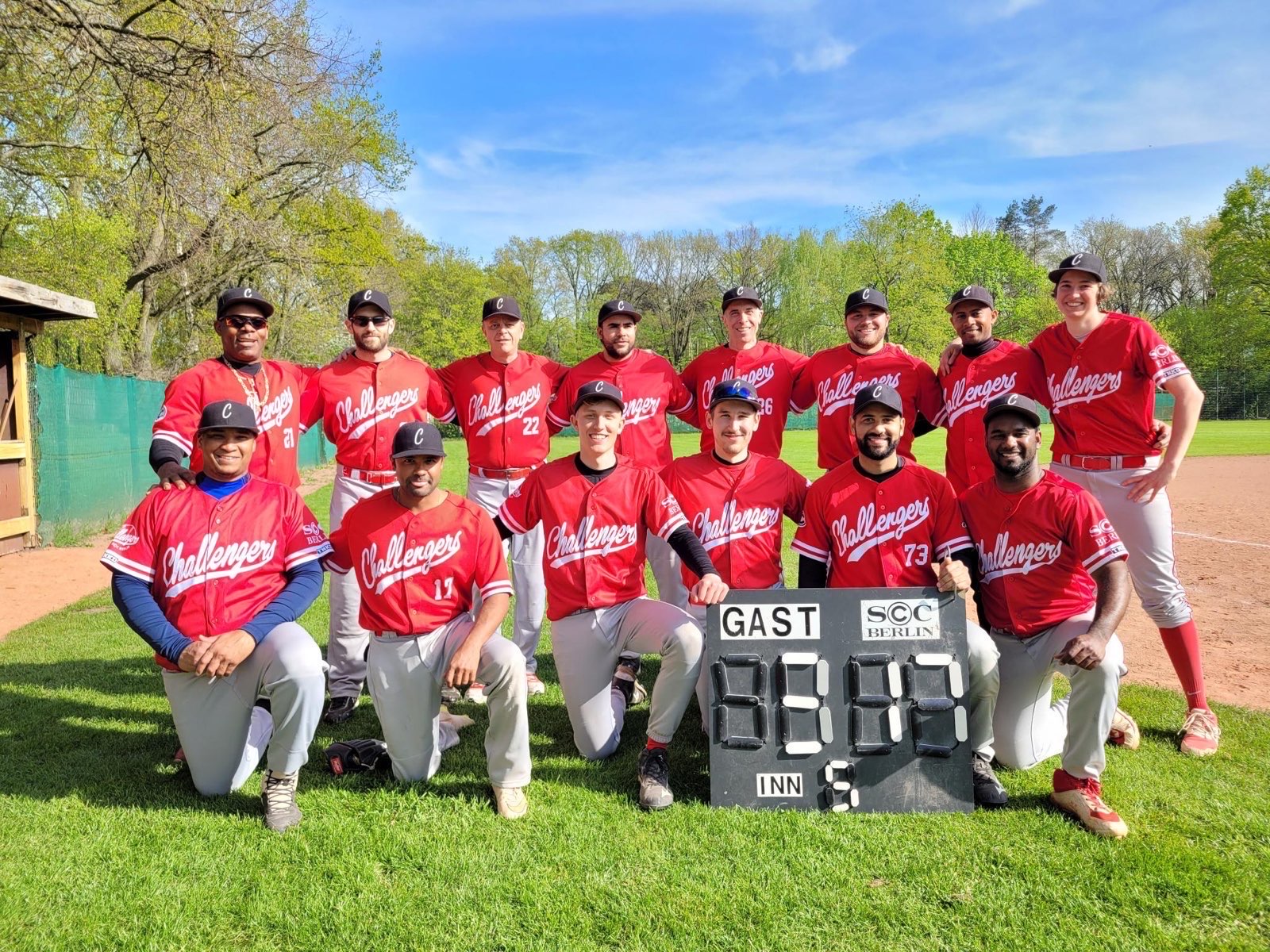 Für den First Pitch der Verbandsliga Nord bedanken wir uns beim Ehrenpräsidenten Klaus Henk und dem Präsidenten Andreas Statzkowski vom SCC sowie beim ebenfalls erschienenen Schatzmeister des SCC und langjährigen Challenger Ralph Rose.