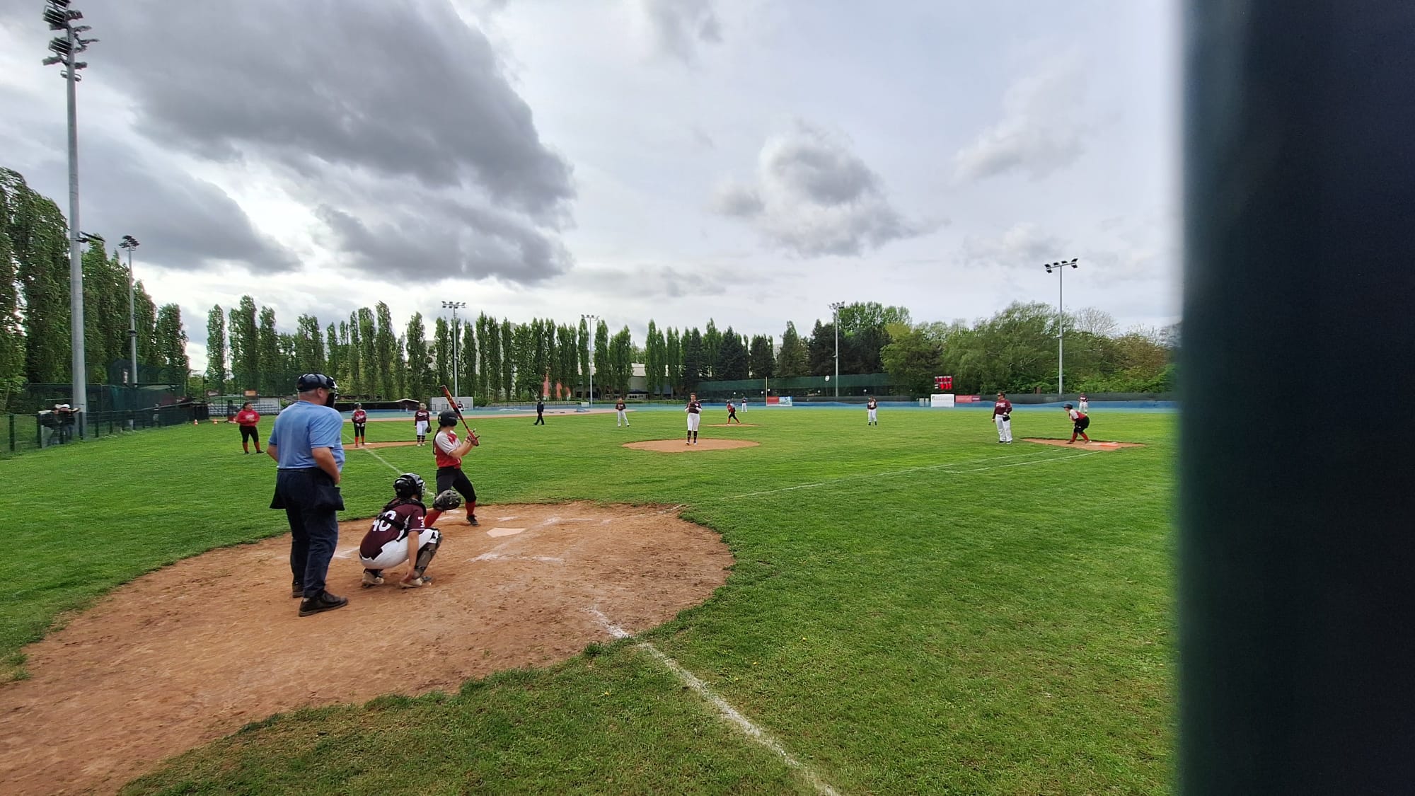 Wir konnten nur mit 8 Spielern antreten. Der Grund war, das drei unserer Schüler leider nicht dabei waren. Wir waren jedoch sehr froh, dass uns Vanessa (Softball) aushelfen konnte. Der Pitcher der gegnerischen Mannschaft (Auswahlspieler) war einfach zu stark, es sei zu bemerken, dass wir vier Spieler auf dem Feld gehabt haben, die noch nie einen livepitch erfahren hatten. Einen echten Hit habe wir leider nicht geschafft. Da aber nach vier Balls, ein Coachtoss folgte, kamen wir immerhin auf Base. James und Vanessa erzielten jeder einen Run. Am Ende stand es 12:2 für die Eagles/Sluggers. Für uns war es ein erste, tolles Erfahrung. James und Elias probierten sich als Catcher. James und Philippe versuchten sich auch als Pitcher. Vanessa, die wesentlich routinierter am Pitch war, machte dem ein oder anderen Batter das Leben schwer.
