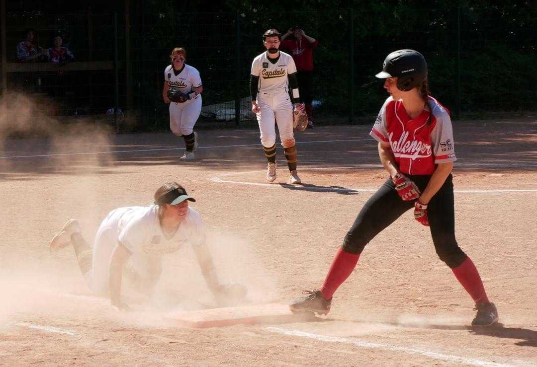 Zum Saisonauftakt am 9.5. in Berlin empfingen die SCC Challengers die Capitals aus Bonn. Bei bestem Softball Wetter konnten die Caps souverän zwei Siege einfahren und gewannen mit 1:19 und 5:19.