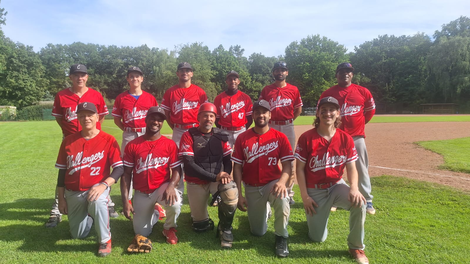 Am Sonntag durfte auch die 1. Mannschaft spielen und es erwartete uns das Derby am Eichkamp. Die Slieders hatten das Hinspiel für sich entscheiden können und eine weitere Niederlage würde den Sliders Aufwind geben. Die Herren starteten sehr gut in das Spiel und holten sich in den ersten drei Innings 5 Runs rein, während man den Sliders nur ein Run erlaubte. Ab dem fünften Inning dominierte man sowohl in der Verteidigung als auch im Angriff. Im fünften und sechsten Inning konnte man sich ganze 10 Runs erzielen. So stand es nach dem sechsten Inning 15:4 für unsere Challengers. Im letzten Inning ließ man nix mehr zu und so konnte man das Derby am Eichkamp deutlich mit 17:06 für sich entscheiden.