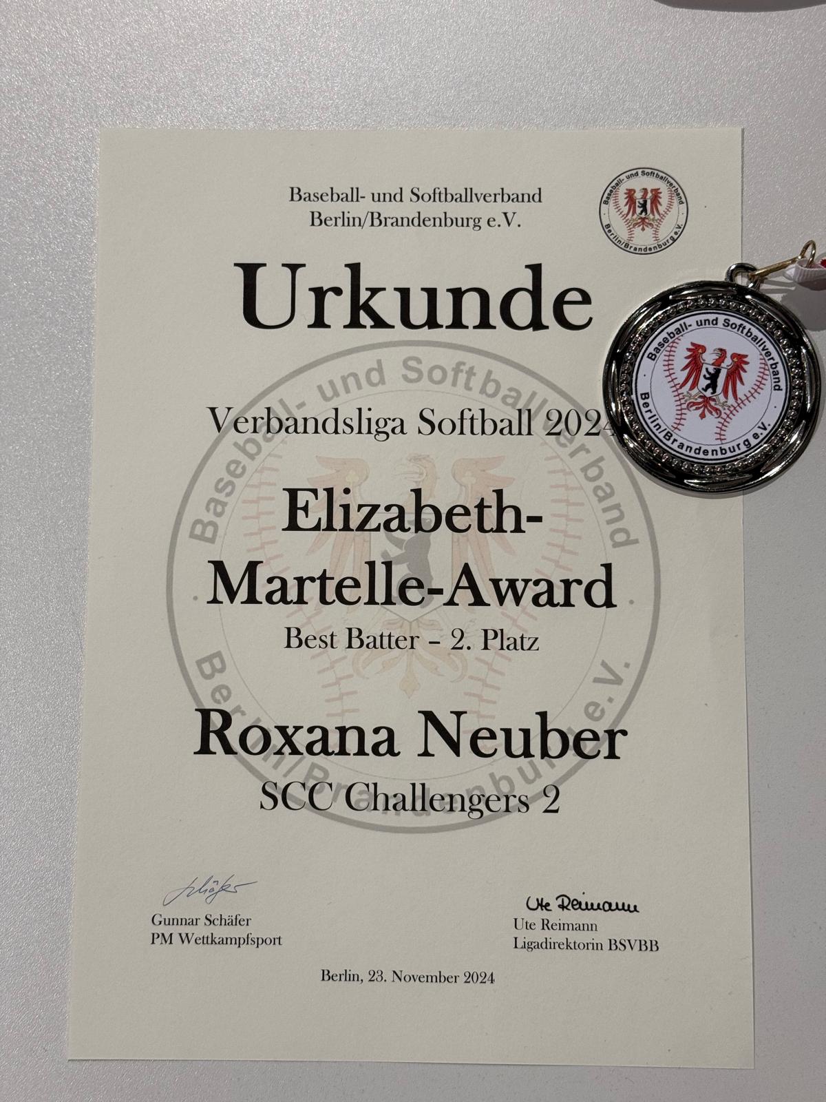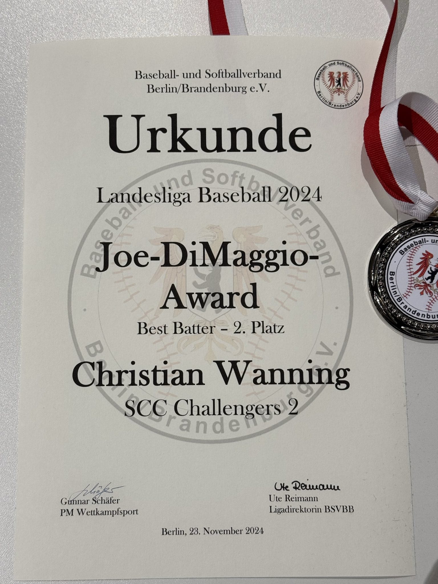 am Samstag, den 23.11.2024 fand im Coubertain-Saal des LSB Berlin (Jesse-Owens-Allee 2, 14053 Berlin) die Meisterfeier 2024 statt. Dabei erhielten unsere Meister (Softball Juniorinnen) jeweils ihre Urkunde und ein Meisterpokal. Außerdem wurden einige unserer Spieler/-innen mit individuellen Preisen ausgezeichnet. Wir bedanken uns bei allen Spieler/-innen, Trainern, Betreuern und Eltern für eine wunderbare Saison.