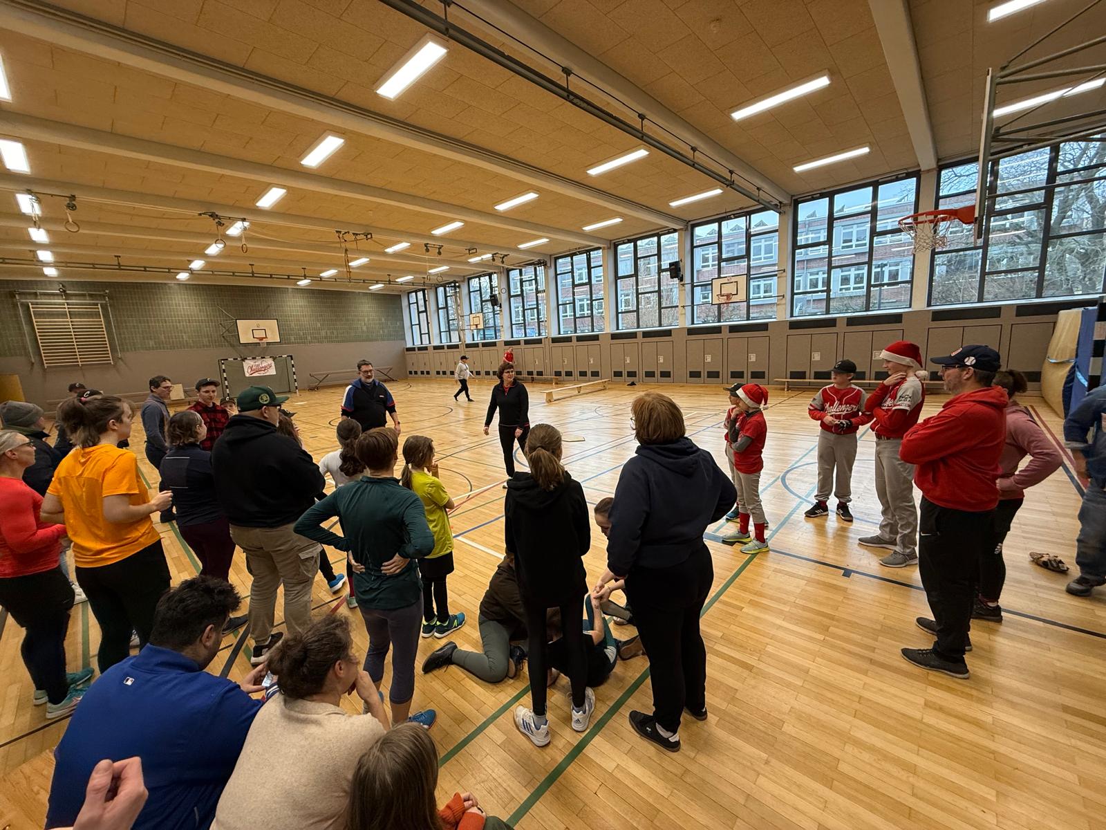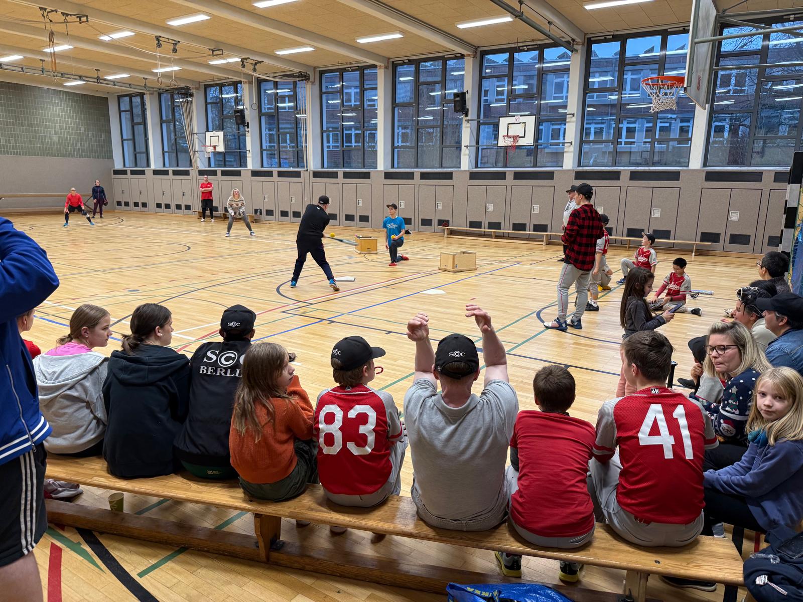 Die Feier begann mit einem vollen und leckeren Buffet, an dem sich alle Anwesenden ausgiebig beteiligten. Melanie Sander, die Vorsitzende der SCC Challengers, eröffnete den Abend mit einer herzlichen Begrüßung und einem Dank für die unterstützende Gemeinschaft und die erfolgreiche Saison.Nach d er Begrüßung wärmten sich die Teilnehmenden mit einem kleinen Aufwärmspiel auf und bereiteten sich auf das Highlight des Abends vor: ein Mini-Turnier. In gemischten Teams aus Eltern, Geschwistern, Baseballern und Softballern wurden zahlreiche spannende Spiele ausgetragen. Besonders beeindruckend waren die vielen guten Spielzüge und die zahlreichen Homeruns, die bei allen für Begeisterung sorgten.