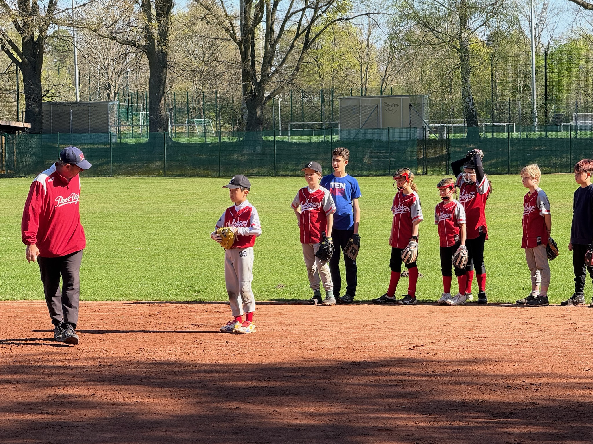 es ist Ferienzeit!!! Was bietet sich da also Besseres an, als die Zeit auf dem Baseball- und Softballplatz in Berlin Charlottenburg zu verbringen? Das Interesse am Ostercamp der Berlin Challengers war riesig und so trafen sich 40 Jungen und Mädchen bei perfektem Frühlingswetter, um die Grundlagen von Baseball bzw. Softball zu lernen oder zu vertiefen.