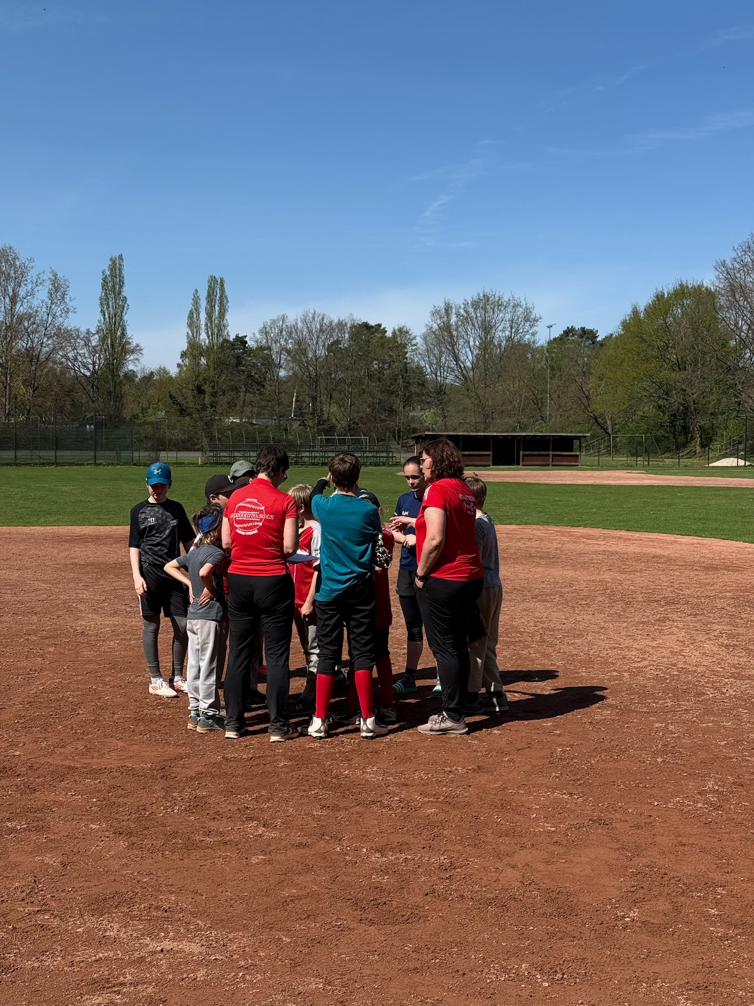 Den Tagesabschluss bildete jeweils ein Spiel in Form von Baseball, Softball und Baseball5, bei dem das Erlernte direkt umgesetzt werden konnte. Am letzten Tag absolvierten die Kids ein kleines Turnier mit 3 gemischten Teams. Hier übernahmen die erfahrensten Spielerinnen die Aufgaben der Coaches und sorgten dafür, dass jeder sich einmal auf unterschiedlichen Defence-Positionen ausprobieren konnte. Dabei waren richtige Spielzüge und spannende Plays zu beobachten. Nach der Verkündung der Platzierungen gab es noch eine kleine Erinnerung für Groß und Klein.