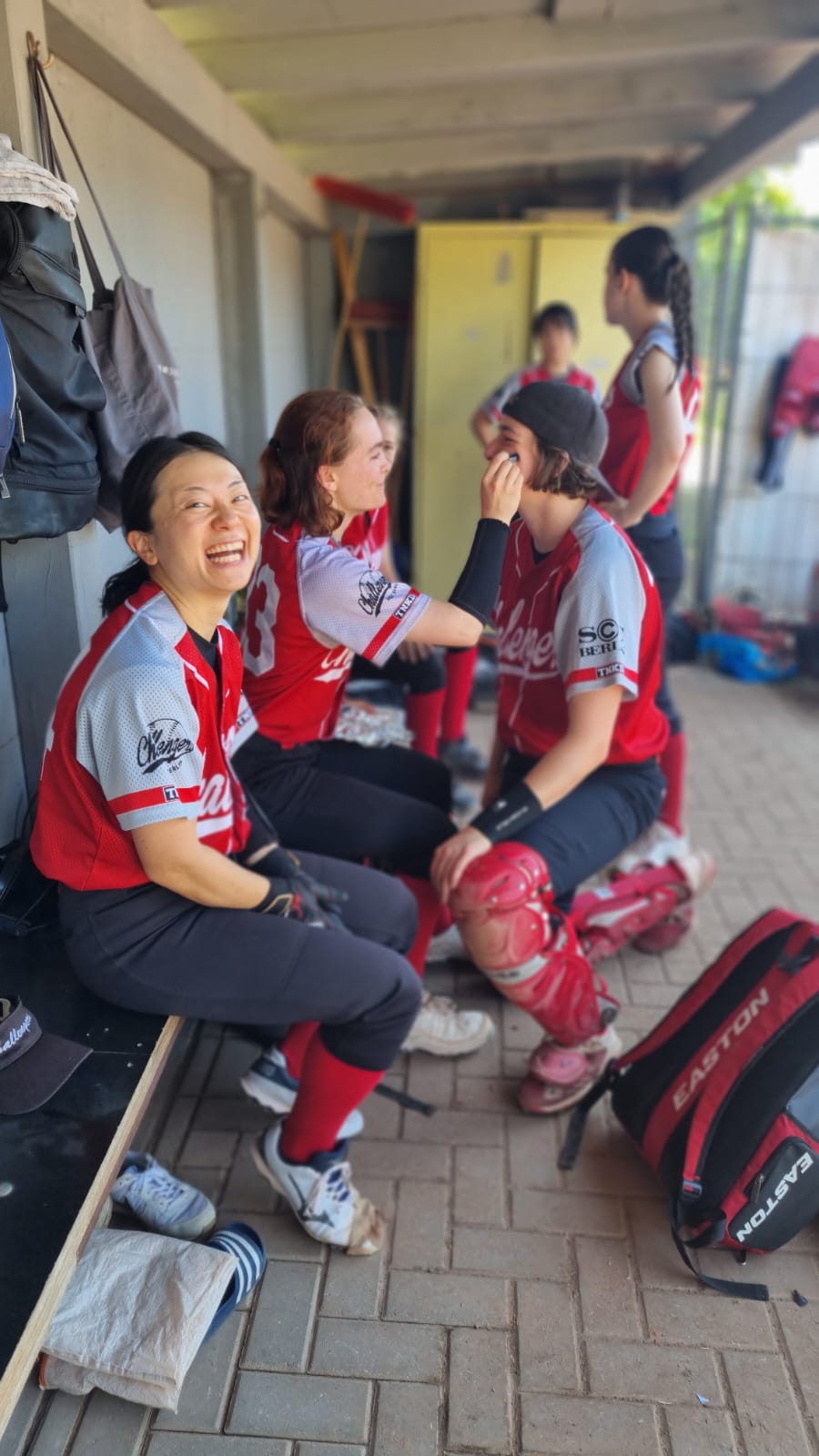 Catcher Jan-Ole zeigte [vielleicht auch zum Eigenschutz bei Brattemperatur] eine gute Leistung und ließ kaum einen Ball in den wirklich großen Backstop durch. Im Ergebnis verloren die Challengers jedoch 4:15.